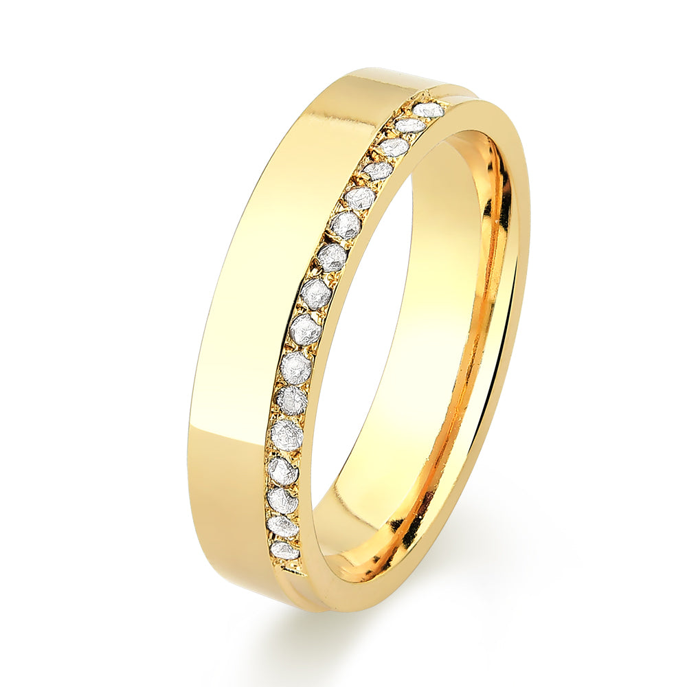 Aliança de Ouro para Noivado e Casamento Reta com Pedras na Borda