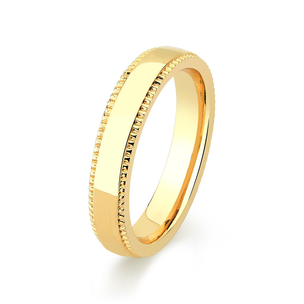 Aliança em Ouro Abaulada com Borda Trabalhada 4,1mm