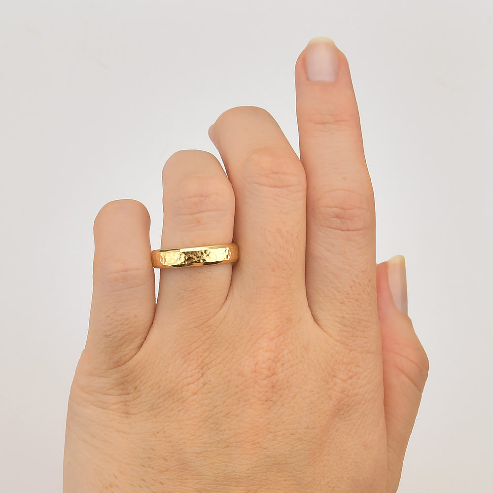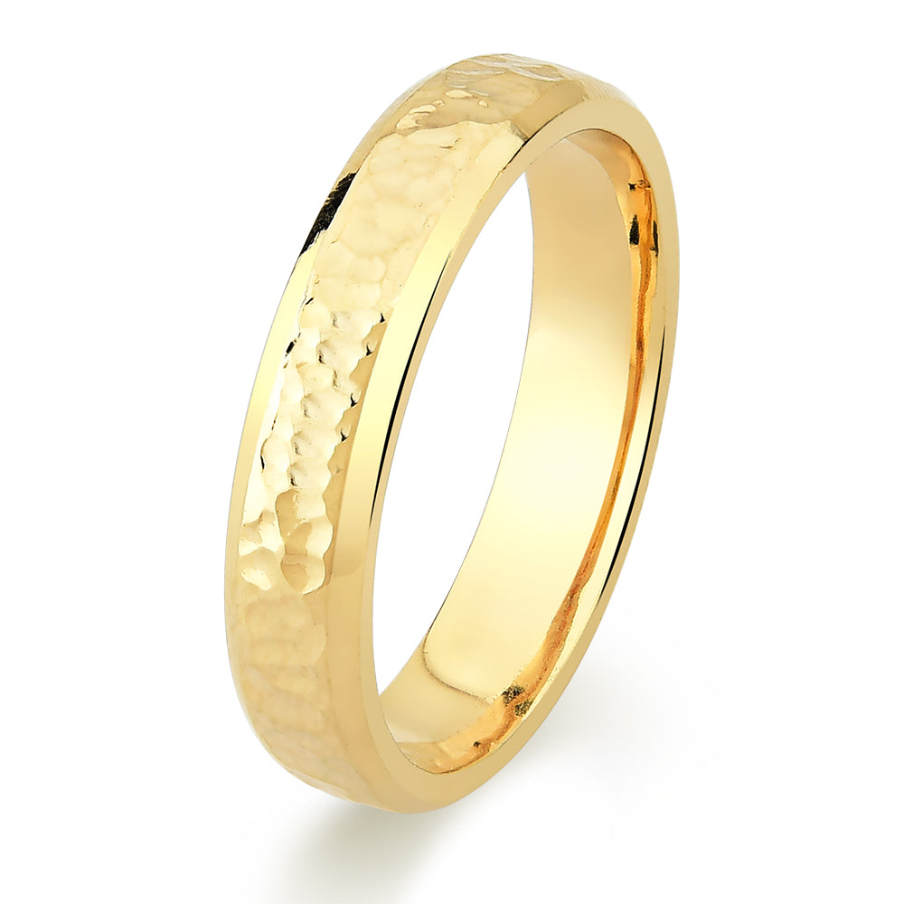 Aliança Martelada em Ouro 18K com Cantos Chanfrados